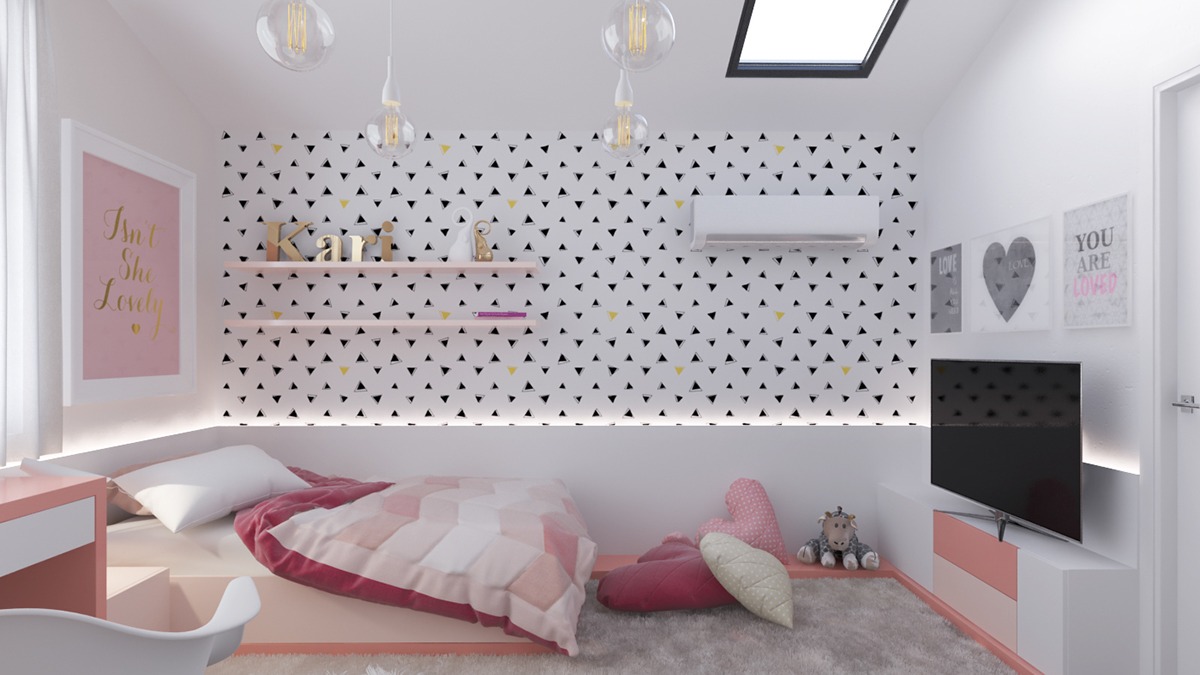 Следва детска стая със смели цветове и страхотни вградени елементи, които правят тази детска стая специална. Въпреки, че не е толкова просторна, или екстравагантна като предишните спални, яркитe цветове и удобни мебели превръщат тази спалня в гостоприемно място, а не просто в място за спане.
