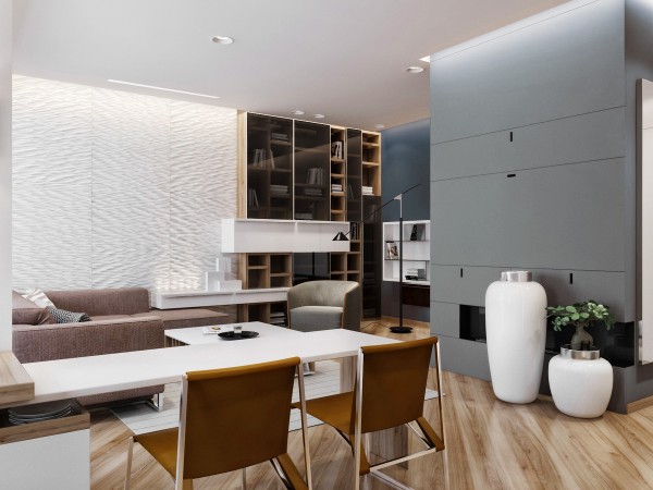 Изключително изчистени линии, смело съчетаване на форми, удобно потънали в сиви нюанси и излъчващи дълбочина, блясък, функционалност и комфорт – това е предложението на този градски апартамент, обвит уютно в тишина и лукс.