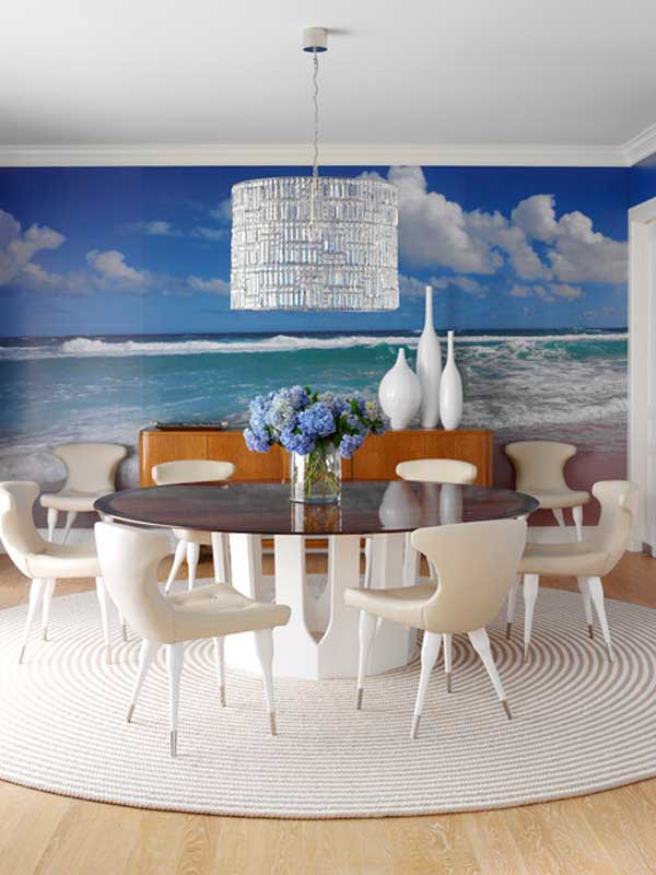 Ако стаята е слънчева, с много прозорци и в светли тонове, е добре да изберете морски пейзаж, тъй като преобладаващите цветове в него са синьо и бяло. Морският фото тапет ще раздвижи атмосферата, ще внесе свеж полъх и капка романтика.
