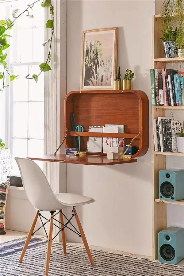 Бюрата, падащи от стената с механизъм на панти, са изключително популярни и лесни за експлоатация. Могат да се срещнат във всякакви варианти и форми.