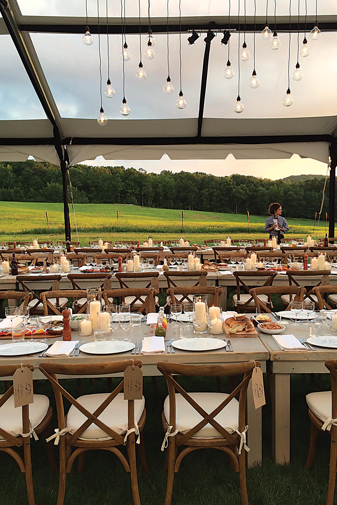 Какъв е ключът към създаването на романтично настроение? Сватбеното осветление е най-добрият и най-прост начин за целта. Използвайте повече висящи светлини с голи крушки, полилеи (както винтидж, така и модерни) и свещници, които да хвърлят меко сияние.