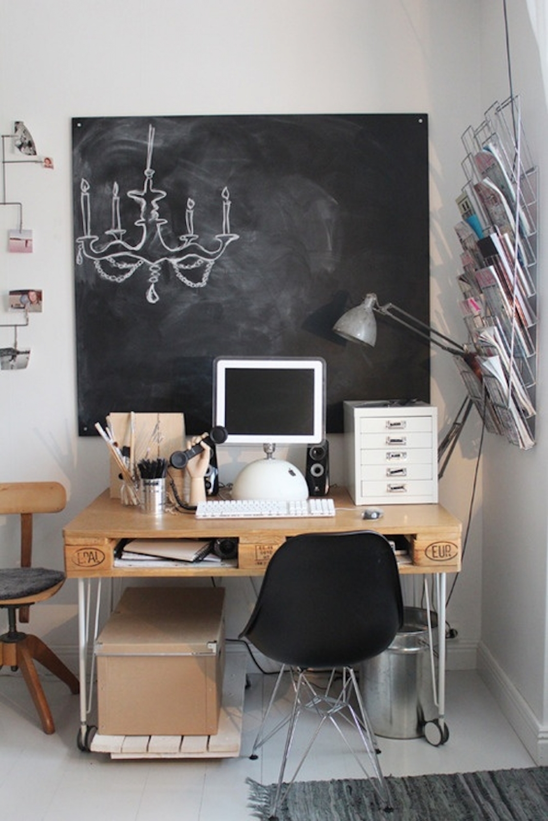 Предстои ви редекориране на вашия домашен офис? Придайте му истински характер с тази идея от палет. За това работно бюро не е нужно да имате най-съвършените палети. Ако имате малко повече време след това можете да оцветите прясно дърво в желан цвят, което ще придаде повече индивидуалност.