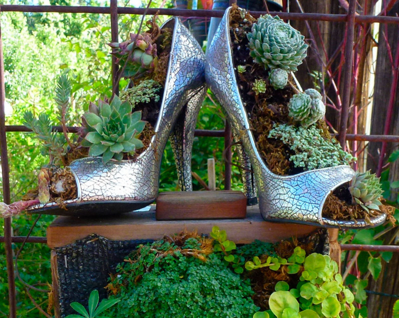 Накрая, но не на последно място, може да рециклирате и старите си обувки, които вече не носите, но с които още не можете да се разделите. Вместо да ги изхвърляте, можете да ги превърнете в хубави саксии за цветя; можете да засадите малки кактуси или други видове цветя, които цъфтят доста често, така че любимите Ви обувки да заживеят втори живот, още по-красиви и по-ярки от преди.