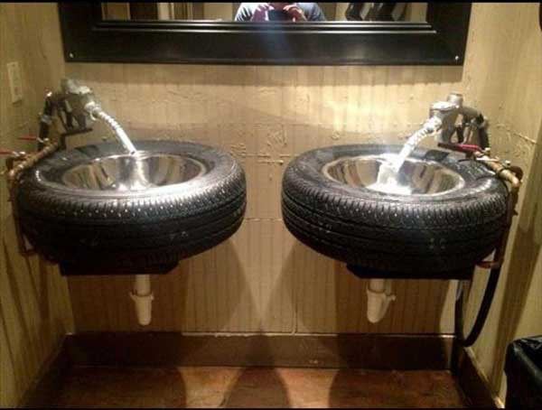 Тази мивка наистина е изработена от автомобилна гума; представете си колко пари спестявате по този начин, като просто почиствате и използвате старата гума за колата, а и колко оригинално и креативно решение е това за Вашата баня.