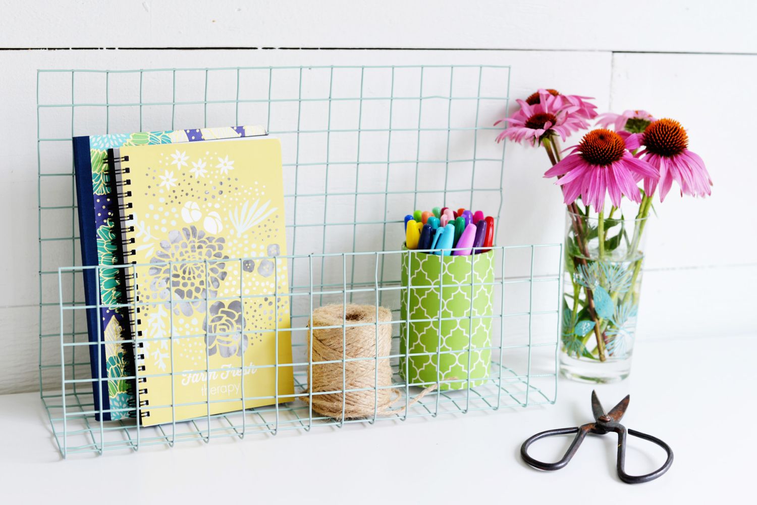Можете да си направите органайзер от тел, който да се окаже перфектен за вас ако искате да държите всичко на едно място, без да го криете в шкафове. За изработката му не ви е нужно кой знае какво. Необходими са ви, тел за ограда, клещи за тел, флакон спрей боя и чук. Можете да придадете всякаква форма на органайзера, бъдете изобретателни, но и практични.