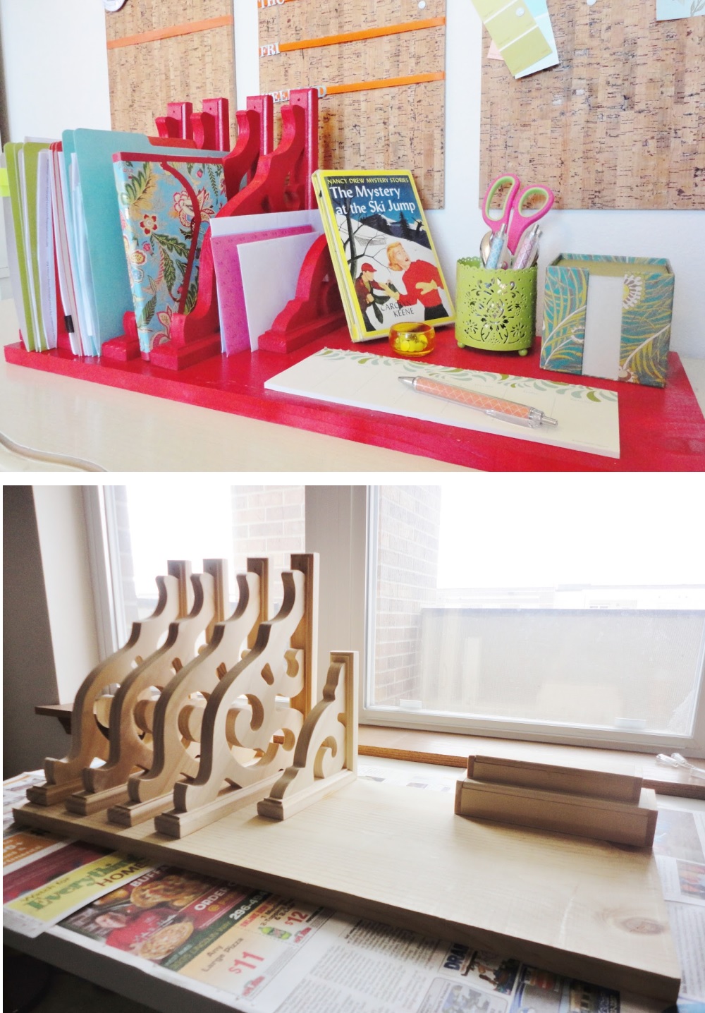 За да е абсолютно функционален, един органайзер трябва да е проектиран според нуждите на ползвателя си, без липсващи или излишни отделения. Най-лесно е ако сами проектирате органайзера си. Проектът е абсолютно функционален, защото има място за всичко в употреба- ножица, тиксо, тетрадки, разполага дори с малка черна дъска, на която можете да си записвате неща с тебешир. Всяко нещо си е на мястото и самият органайзер изглежда невероятно спретнато.