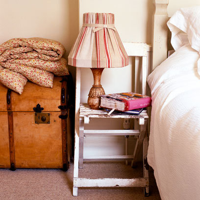 Почти всичко може да бъде използвано- стар стол, стълба, куфари, кутии и т.н… Разбира се, можете да се спрете и на дизайнерско произведение. Дали ще направите нощното шкафче сами, или ще си купите готово, зависи от вас.
