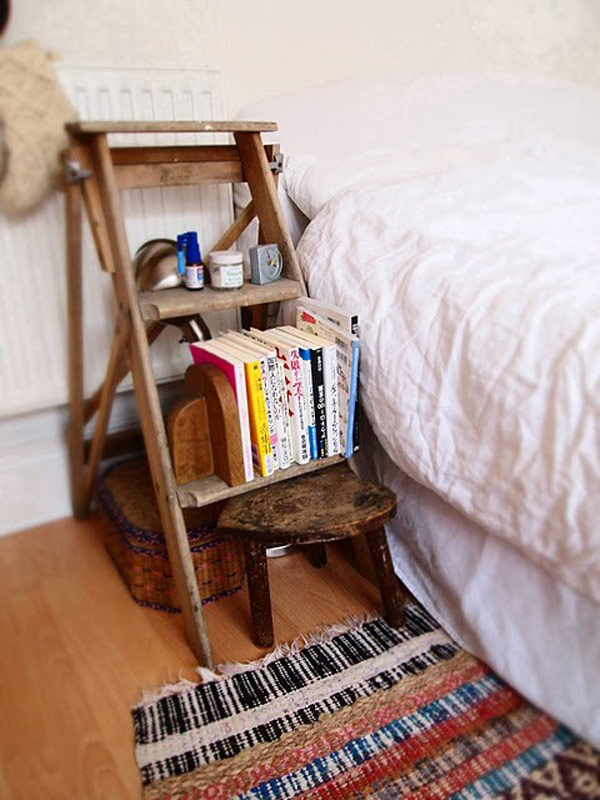 Почти всичко може да бъде използвано- стар стол, стълба, куфари, кутии и т.н… Разбира се, можете да се спрете и на дизайнерско произведение. Дали ще направите нощното шкафче сами, или ще си купите готово, зависи от вас.