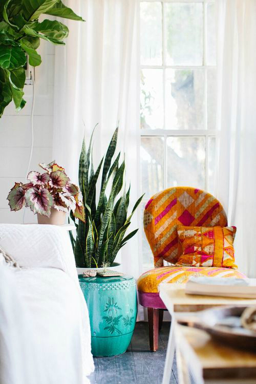 Предложенията ѝ за обзавеждане и декориране са рафинирани и функционални. В тях има много цвят и съчетание от различни десени и щампи, много метални елементи със старинен привкус, естествените тъкани разбира се са на особена почит, както и инди везаните възглавници във всеки кът. Но тя разкрива, че бохемският чар не е задължителната шарения и дори не е близо до безвкусицата, която повечето хора си представят. Показва ни, че тъмно сивото или дори черното са добра сцена за всякакви пана и картини, както и че всичко което ви е под ръка – до стари банкноти е аксесоар във вашето място.