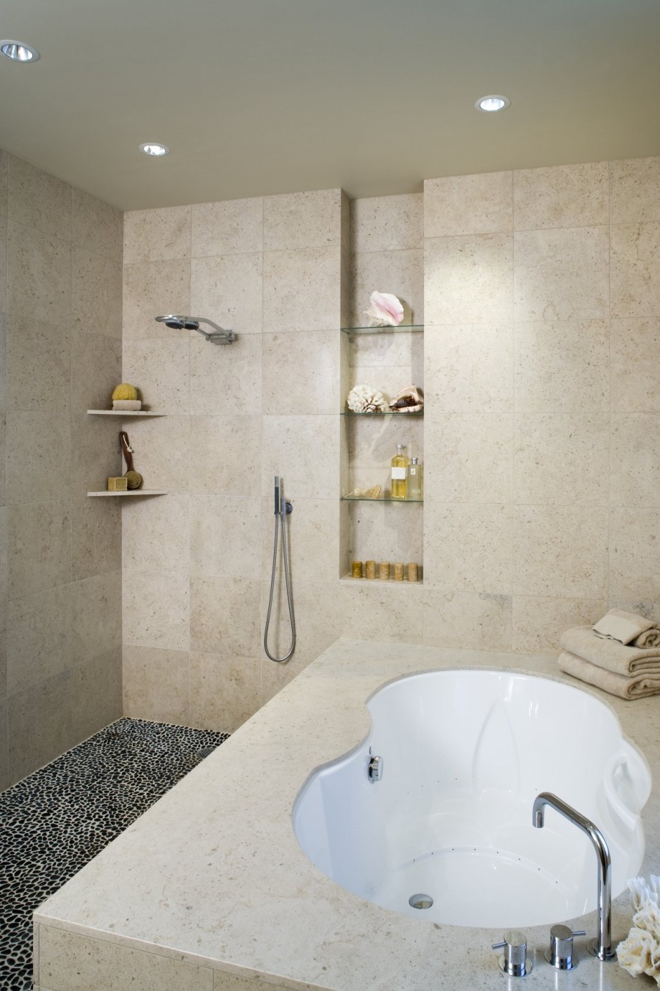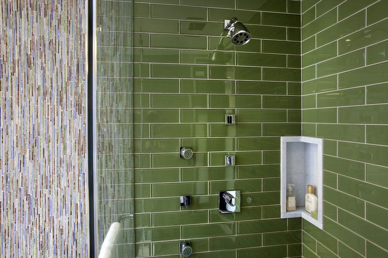 Тази баня, реновирана от “ONG&ONG” в Сингапур, притежава, ниско разположена ниша в душ кабината, само няколко инча над пода. Изглежда доста практично да разположиш ниша ниско в стената до душа, защото е достъпна за всички (деца и възрастни) и понеже на това ниво не бихте могли да съборите нещо докато вземате душ.