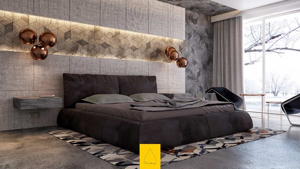 геометрични десени, свръх-голямата табла над леглото са в абсолютен