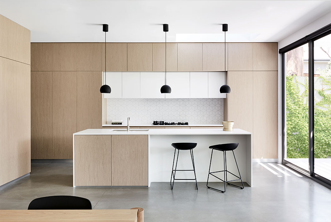 Модерни нотки ни посрещат и в кухните заложили на контраста, най-