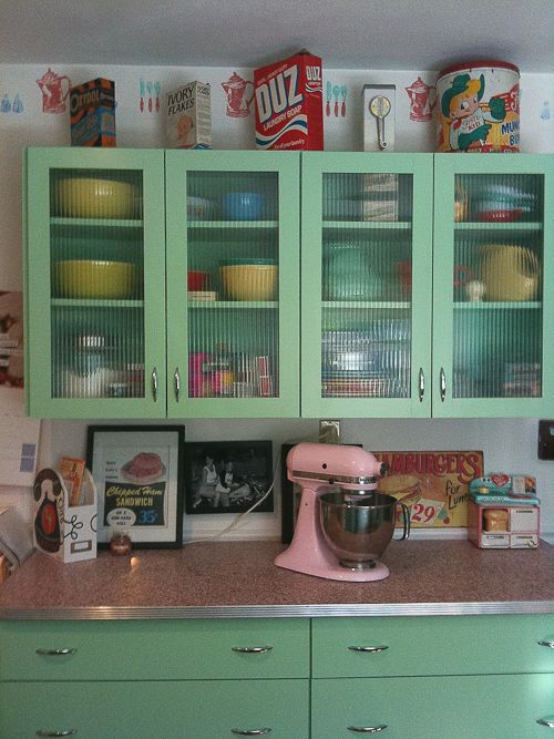 Подхода при избора на цветове може да варира. Червено на бели точки или обратното, ментово зелено, бебешко синьо, бледо розово, всякакъв вид двуцветно каре. Ретро излъчването ще избухне в пълният си блясък с шахматен под в черно-бяло. Ретро означава изобилие от ниши и шкафове.