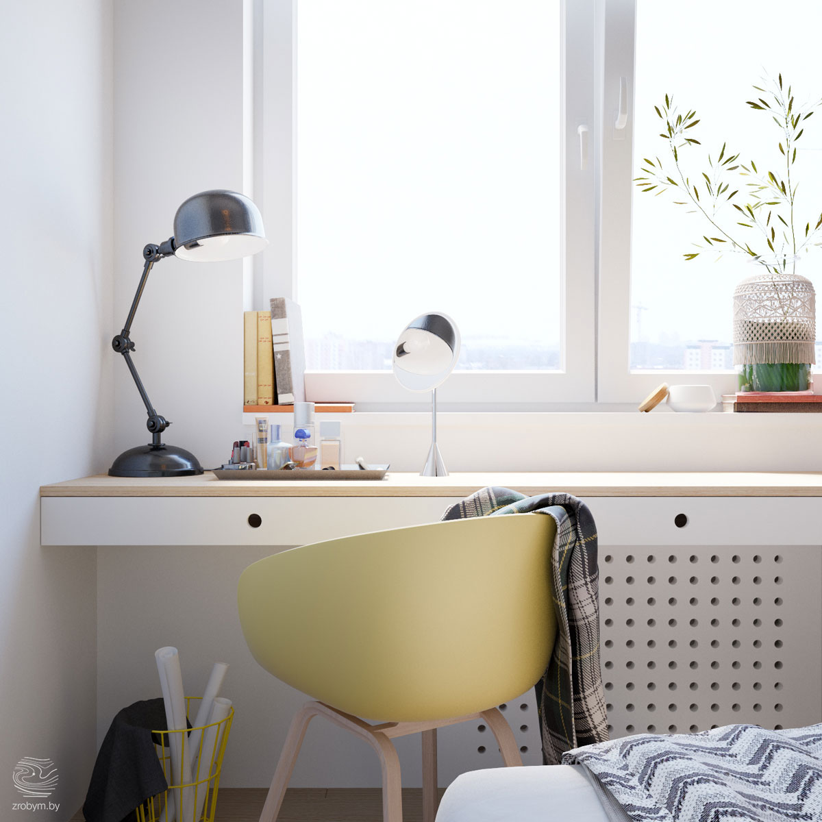 Днес правим обиколка на два малки апартаменти тип студио! Реконструкцията на първия малък апартамент, ситуиран в Минск и дело на интериорният дизайнер Zrobym, ни доказва, че малките апартаменти, не само че не е задължително да бъдат претъпкани, но и съвсем не е задължително да са лишени от простор. Тук той е постигнат чрез елегантни цветови решения. Дизайнерът се е спрял на жълтият цвят като обединяващ елемент, минаващ през всички помещения по невероятно деликатен начин, без да оставя дори съмнение за натрапчивост или да превзема така или иначе малкото пространство. Веселите акценти създават интригуваща спънка за окото докато се плъзга из интериора. Стената също е оползотворена до максимум, стенните рафтове са изключително деликатни и предлагат функционалност без да претъпкват пространството.
