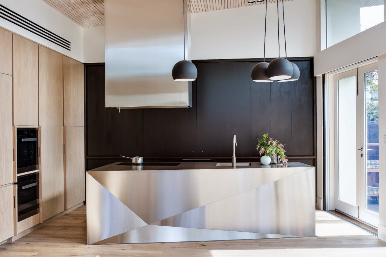 Бетонът е новото разковниче в кухнята според Роб Милс Аркитектс. Тяхната кухня е интериорно изградена почти изцяло от бетон, който всъщност е доста в доста по-топло сиво отколкото очаквате. Можете да се развихрите с децата си във вашата неразрушима кухня, домашни, готвене, футбол – без да губите и минутка спокойствие.