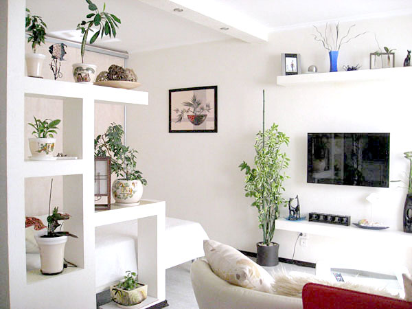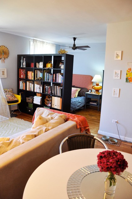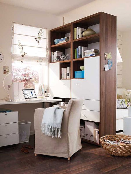 Преградата може да бъде дори от бамбук, като така по-лесно пропуска светлината и същевременно закрива това, което не бихме искали да е на показ. Един обаче много удобен вариант е декоративната преграда – освен като разделител на пространството да речем между кухня и всекидневна – да се използва и като стелаж и място за съхранение на книги и други предмети от бита.