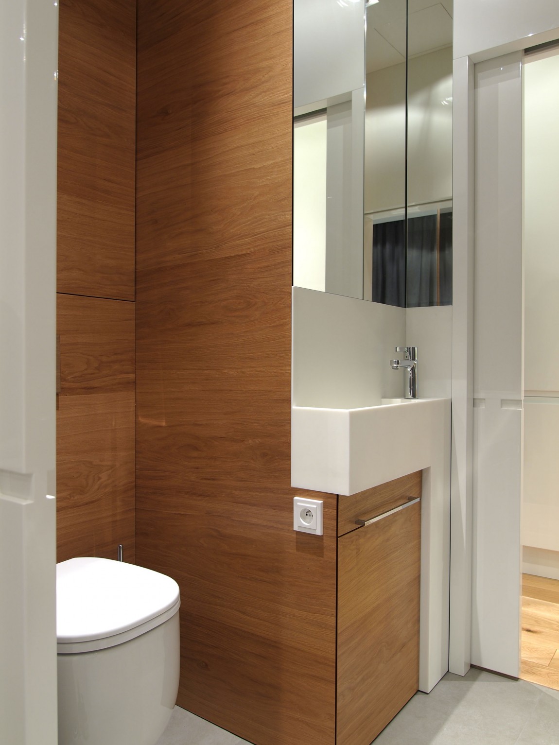 Този елегантен пентхаус се намира в района на Mokotów във Варшава, Полша. Той е проектиран от HOLA Design, които са създали изискано пространство с опростена комбинация на меко сиво и светло дърво. Пентхуасът се намира в сграда на 12 етаж и предлага красив гледки над Варшава. Всички мебели в жилището са проектирани от HOLA Design,и са създадени специално за собственика.
