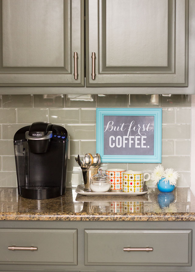 Събере на едно място всички неща, които ползвате за направата на кафе, като материали, уреди, съставки, посуда… Така ще създадете кът за кафе. Можете да използвате помощна масичка, количка, кухненския плот, шкаф, или да направите мебел специално за това.