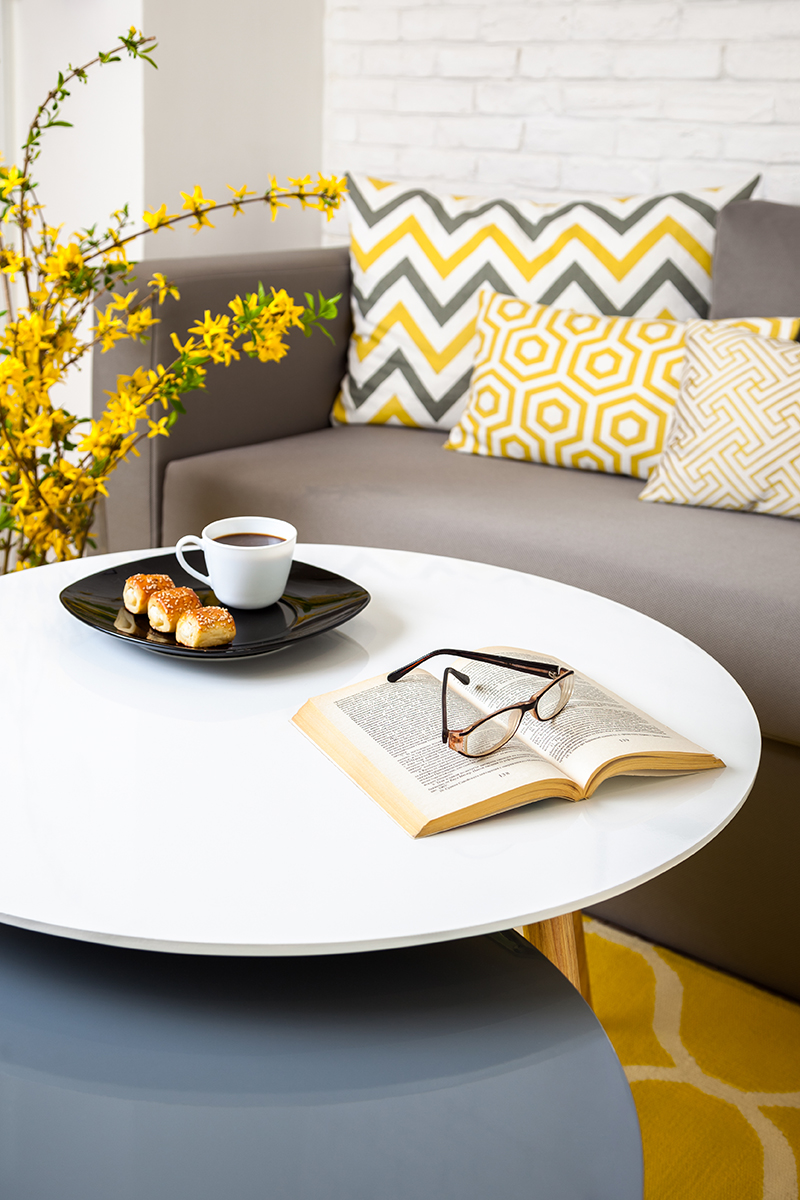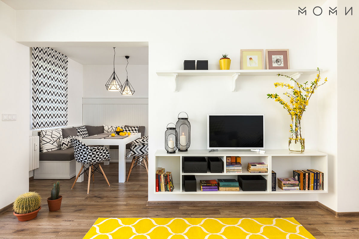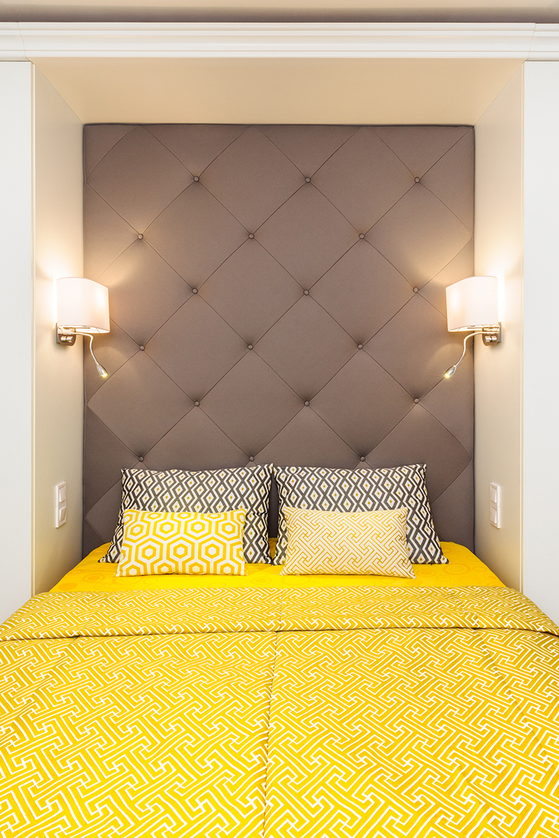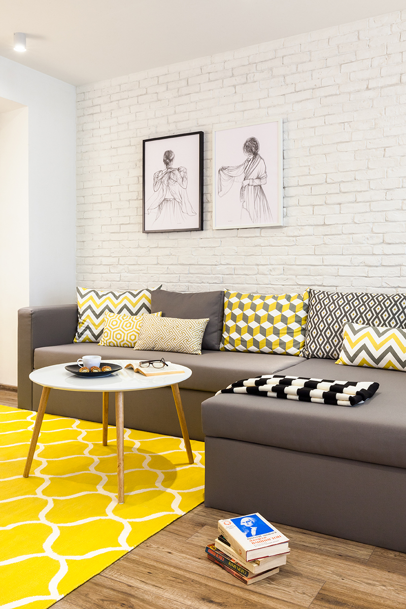 Цялостната атмосфера и слънчево настроение, което се усеща в апартамента се дължи и на умело подбраната цветова гама и в частност на жълтия цвят, който допълнително зарежда пространството и е чудесен акцент в черно-белите интериори. Безспорно най-голямата награда за всеки интериорен дизайнер е да знае, че завършения проект носи желаната хармония и щастие на своя собственик.