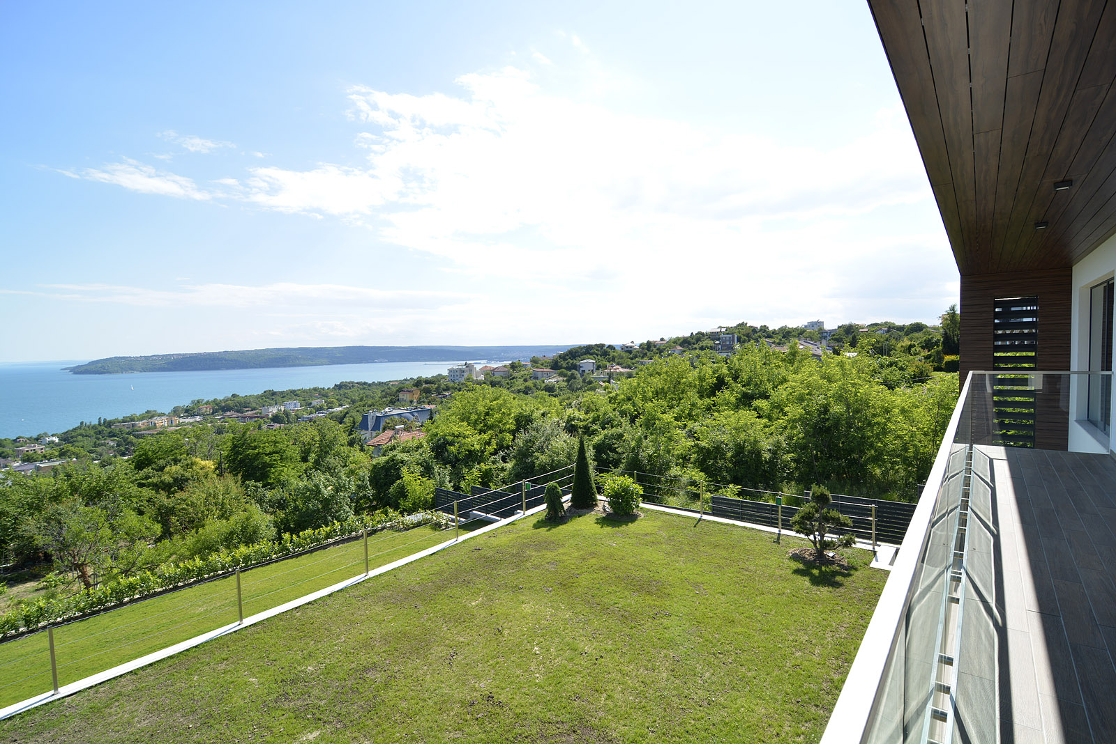 На първо полуниво са разположени зоните за релакс и спорт – сауна и фитнес, които са изцяло вкопани в терена. Спалните помещения, три на брой, всяко от което със собствен санитарен възел, са разположени на второ полуниво, с пряк излаз към двора и чудесен изглед към морето. Ах, само каква гледка!