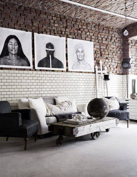 Нещо, което започва като необходимост, сега се е превърнало в търсен ефект. Мнозина привърженици на този стил търсят усещането за недовършеност, за несъвършени текстури и видими архитектурни елементи. Тухлени стени, цимент или бетон, груби и неполирани повърхности, които излъчват индивидуалност, аристичност и характер. Тухлените стени също са доста актуални – в естествения си цвят или боядисани в бяло, те придават типично индустриално усещане на пространството.