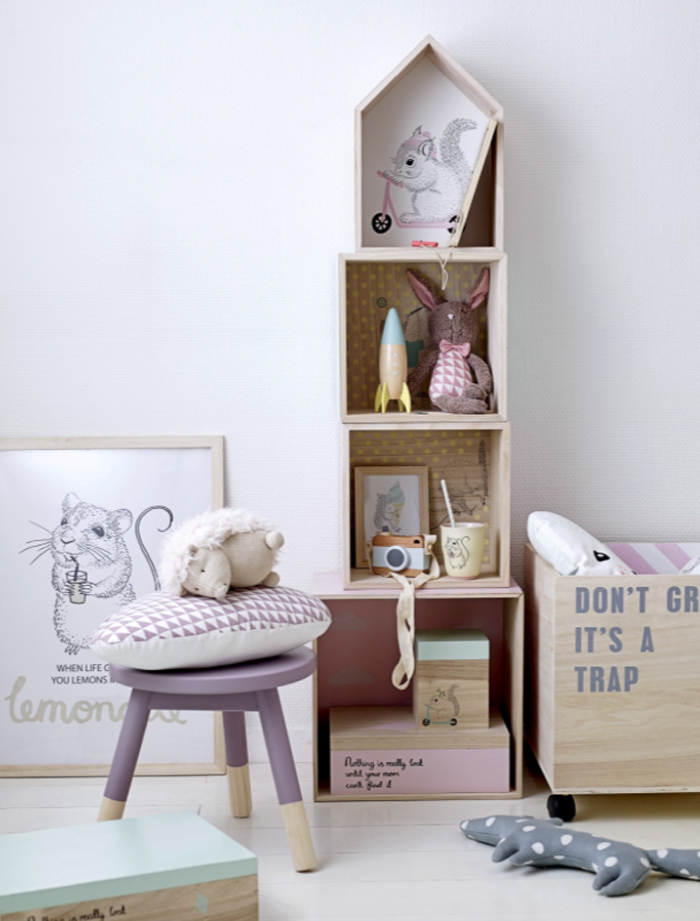 Компанията за интериорен дизайн Bloomingville е специалист в областта. Създадена през 2000 година, тя се превръща във водеща марка за дизайн и малките пакостници не са изключение, защото за тях има цяла мини серия обзавеждане. В типичният Скандинавски стил – умен и изискан, матови, бледи цветове и мебели, които могат да порастват с детето, помислили са за всичко: аксесоари, дрешници, места за съхранение на различни вещи. Колекцията е много разнообразна. Обикновено изборът на матирани цветове предпазва детската стая от онзи прекалено бебешки вид. Естествените, основни материали лесно се комбинират с всичко и актуалността им прехвърля детството. В скандинавският дизайн присъстват много различни декоративни животинки, направени от възли и пръчки, всичко от естествени материали и всяко от тях е шито на ръка.