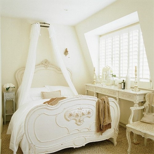 Вградените шкафове ще свършат много работа, спестявайки така необходимото ни пространство. А леглото с балдахин по средата на стаята ще придаде не само въздушност и лекота, но и нотка романтизъм.