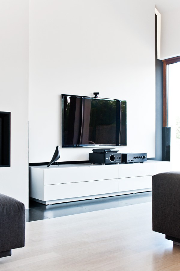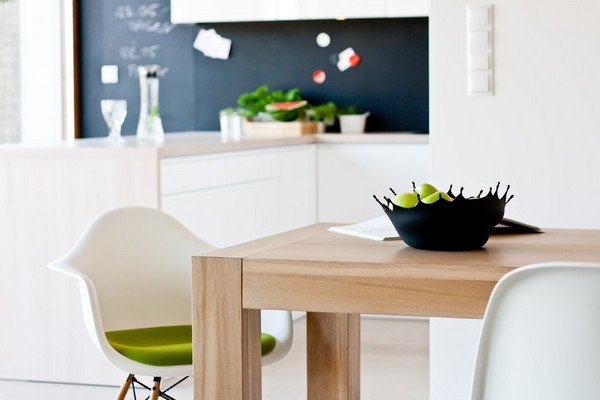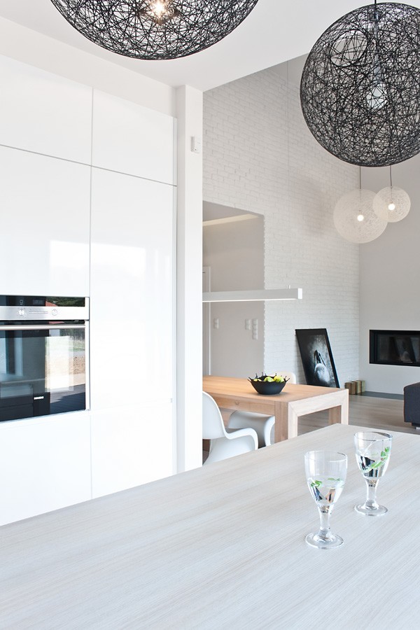 кръг от архитектурни и интериорни проекти: къщи, публични сгради и модернизирани на съществуващи сгради. Те са проектирали дизайн на тази малка, енергоспестяваща къща за млада двойка в Kiekrz. Основните цветове на резиденцията са черно и бяло. Всичко в дома е отражение на начина на живот на обитателите.