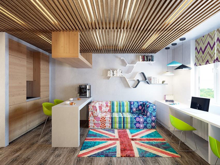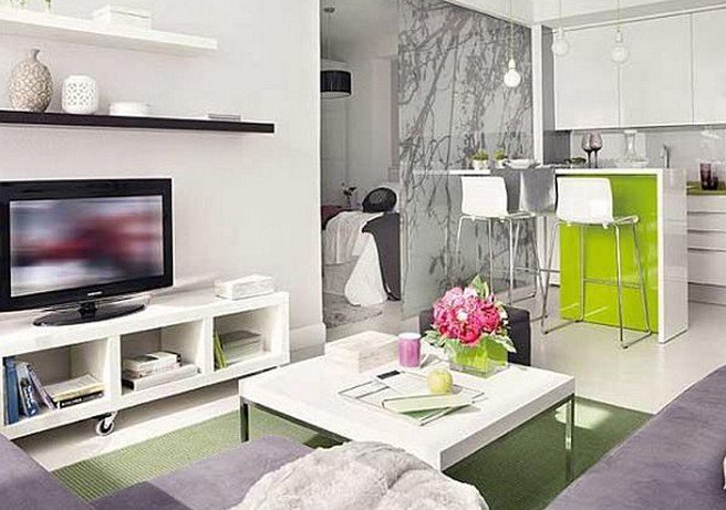 Ако искате вашият апартамент да изглежда по-голям, трябва да боядисате стена в яркък цвят. Също така можете да използвате някои мултифункционални мебели.