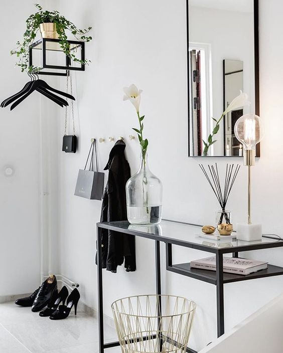 Широките коридори са просто мечта, можете да направите толкова много неща с тях. Сложете дървен скрин в помещението и спечелете допълнително място за съхранение на вещи и пособия. Стенните лавици са друга прекрасна опция за широк коридор – направете стенната библиотека там!
