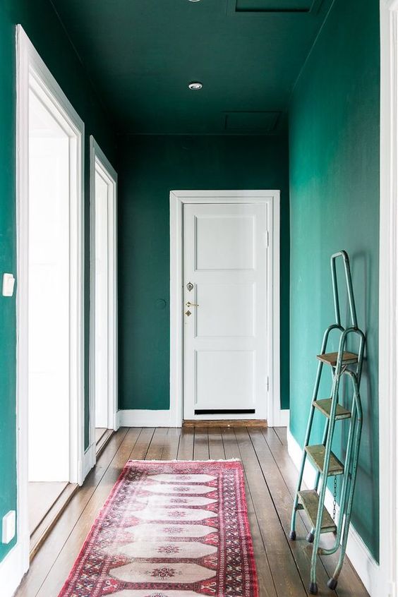 Най-лесният вариант да озарите това иначе тъмно пространство е да го пребоядисате в ярък цвят. Изберете цвят, който вече присъства в интериора ви, но в ярък нюанс или изберете нещо различно и изненадващо.