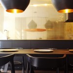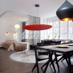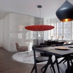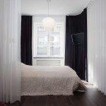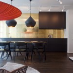 Този апартамент на мен много ми хареса, въпреки факта, че аз не обичам злато. Удивително, но той е точна реализация на старите ми идеи за разделяне на зоните със завеси. За съжаление този мой проект отдавна е замразен, но сега аз виждам, че идеята е добра! Насладете се на баланса на светло и тъмно.