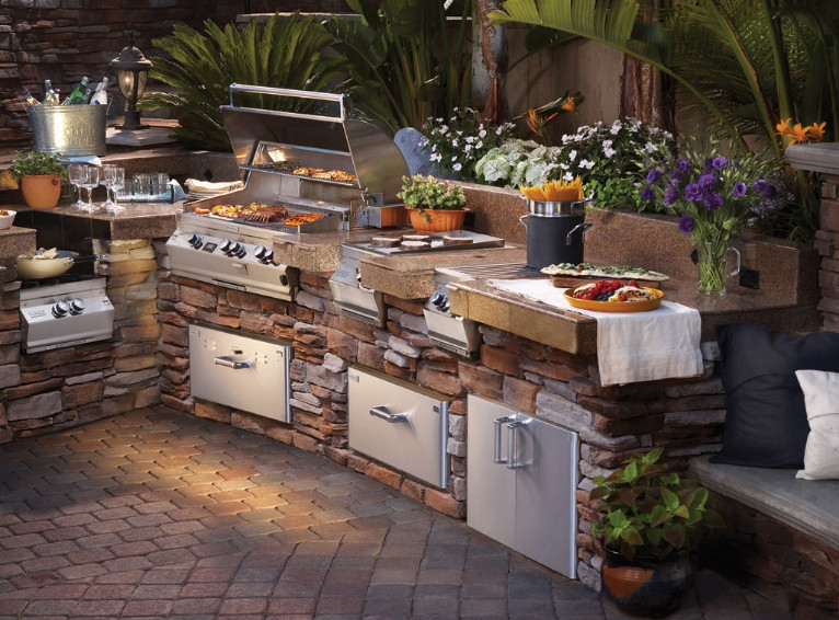 Концепцията за готвене на открито нарастна до изцяло ново ниво. Не говорим за обикновеното барбекю и една торба с въглища. Външните кухни, оборудвани с всичко, включително и кухненски мивки, кофи за боклук, шкафове (и дори фурни за пица!) са по-желани от всякога. Друга популярна функция, наличието на пещ или камина е чудесно допълнение към двора във вашия дом – веднага превръща външните пространства в място, където всеки иска да бъде! Възползвайте се максимално от красивото си открито пространство – двор или градина – пригответе вкусни ястия и ги споделете с приятелите и семейството си. Тези разширения на дома предлагат идеална възможност да се насладите в максимална степен на един прекрасен ден.