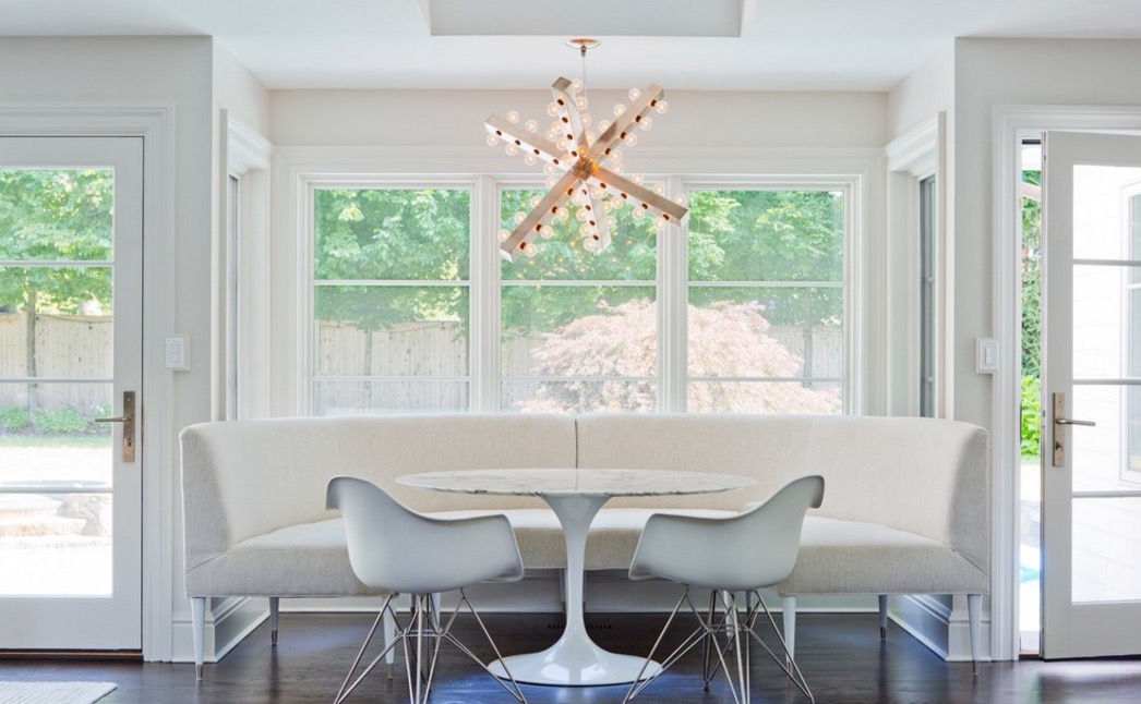 Много от вас смятат, че пейката е запазена за по-провинциално организиран дизайн. Това не е точно така. Пейката може да има разнообразен дизайн, за да пасне в интериора ви. Тук не си представяйте дървена пейка, която със сигурност не била на място. Можете да добавите място за съхранение на вещи под нея, както и да съберете доста гости. Пейката определено набира популярност и става все по-предпочитана в интериора на трапезарията.