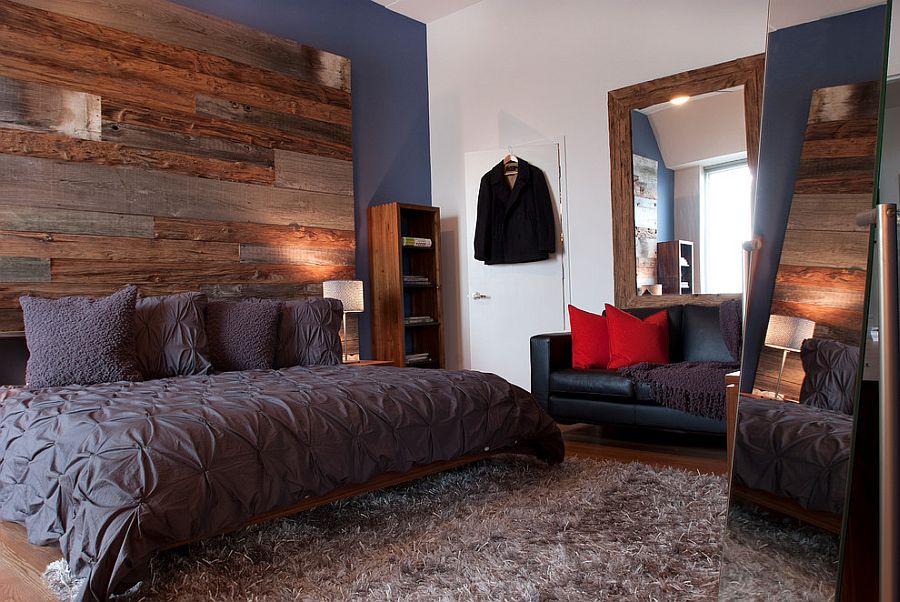 Тези зашеметяващи акцентни стени безпроблемно се сливат с всеки стил спалня, и дори можете да разширите използването на регенериран дървен материал в спалнята – за легло или нощни шкафчета.