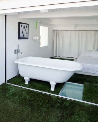 От използането на подова настилка като истинска поляна, доста фантазии започват да пътуват в този малък апартамент: пикник в парка, голф у дома, и още много…