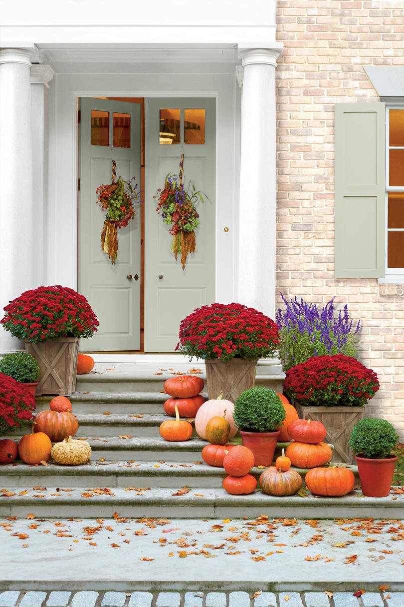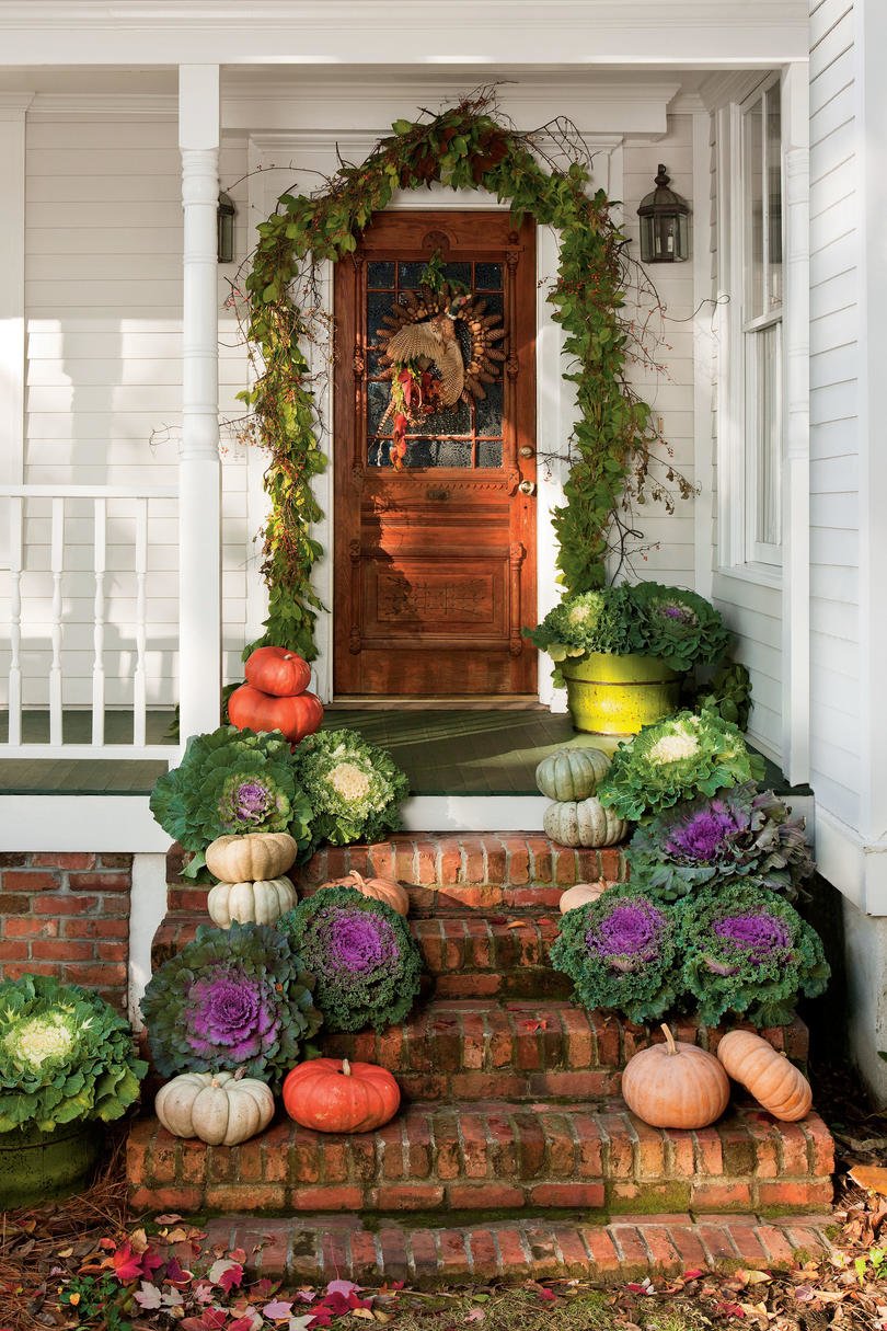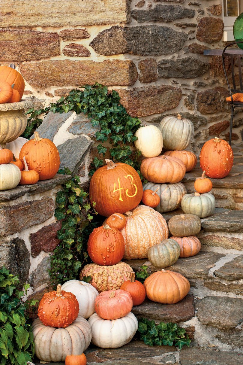 Има толкова много начини да украсите дома си по вкусен и празничен начин за есента. Тиквите могат да послужат като вдъхновение. Можете да направите падащ венец от миниатюрни тикви. Използвайте яркия оранжев цвят – все пак се насочваме към Хелоуин. Обичаме венци, изработени от тикви, които включват свежи цветя като магнолии или много зеленина!