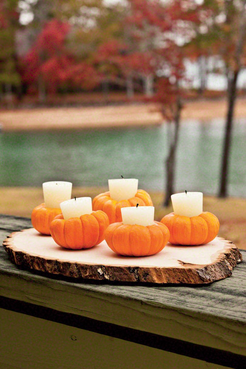 За бърз и лесен подход групирайте любимите си малки тикви на странична маса и оставете колекцията да говори сама за себе си. Няма правилен или грешен начин за създаване на тази декорация. Нека подредбата изглежда непреднамерена, небрежна с добавено безгрижно, сезонно докосване.