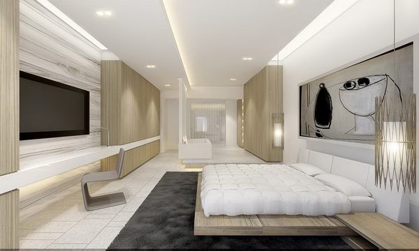 Снимките на ултра модерни спални представят помещения, мечтани за всяко семейство. Спалните са достатъчно просторни, за да можете да разположите всякакъв вид мебели в помещенията. Декорирани са с модерни мебели и изключителни декоративни елементи, кото правят спалнята изискана, удобна и изключително красива. От пода до тавана, прозорците, огледалните врати на гърдеробите, впечатляващите полилеи, пухените килими от козина, интересните рамки за леглата и всички кожени или друг вид декоративни елементи са само част от многото впечатляващи части от декора на ултра модерните спални.