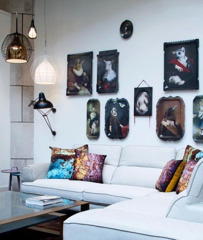 Това е един постоянен баланс между артистичното разказване на истории и ежедневните ни нужди. Ibride постига уют по много нестандартен начин, комбинация от модернистични картини във старовремски, богато орнаментирани рамки, винтидж кожени кресла, сурово дърво и много елементи от животинското царство – масички с профила на лъвове и мечки, декорации за стена във формата на щраус или гарван, които са и етажерки, много малки декоративни вещи като компаси и глобуси. В дамаските присъстват кожа, кадифе и флорални мотиви, а цветовете варират от неутрални до царствени и наситени.