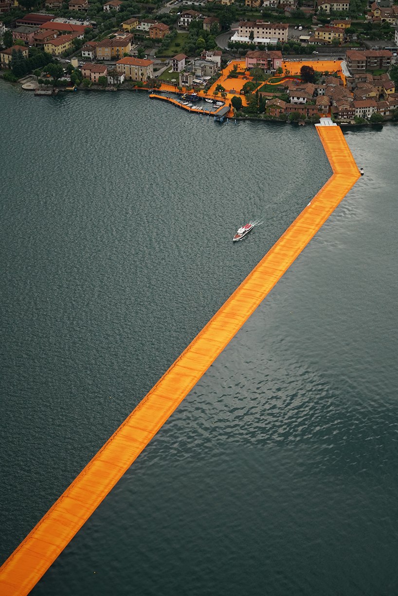 Tри километра пътеки в цвят шафран временно се свързват на брега на езерото Iseo в Италия до островите в центъра му като част от тази инсталация от българския артист Христо Явашев (Кристо). Плаващият кей се простира отвъд езерото и ще бъде на разположение в рамките на 16 дни през юни 2016 г.