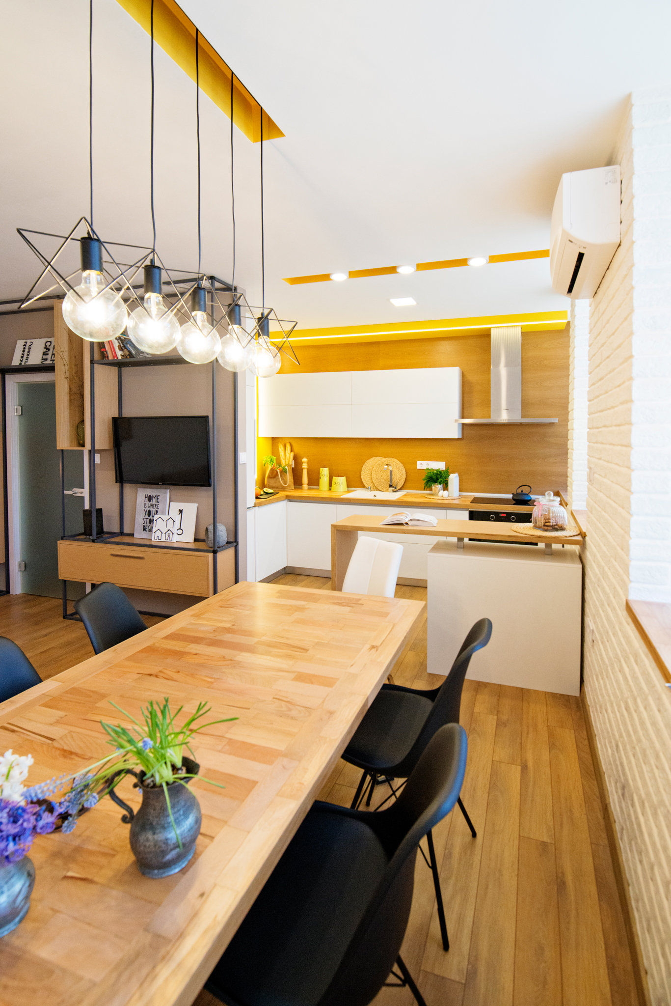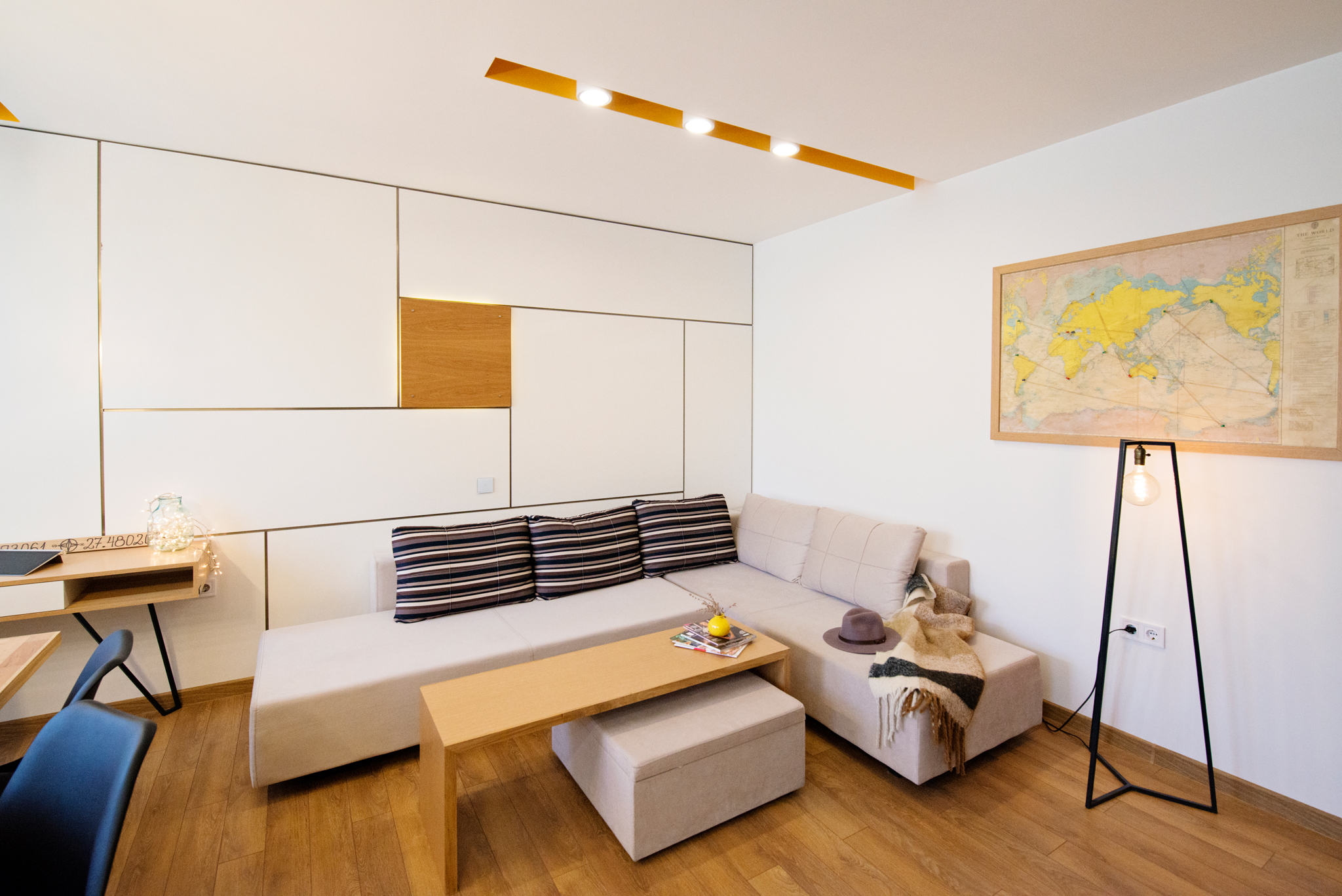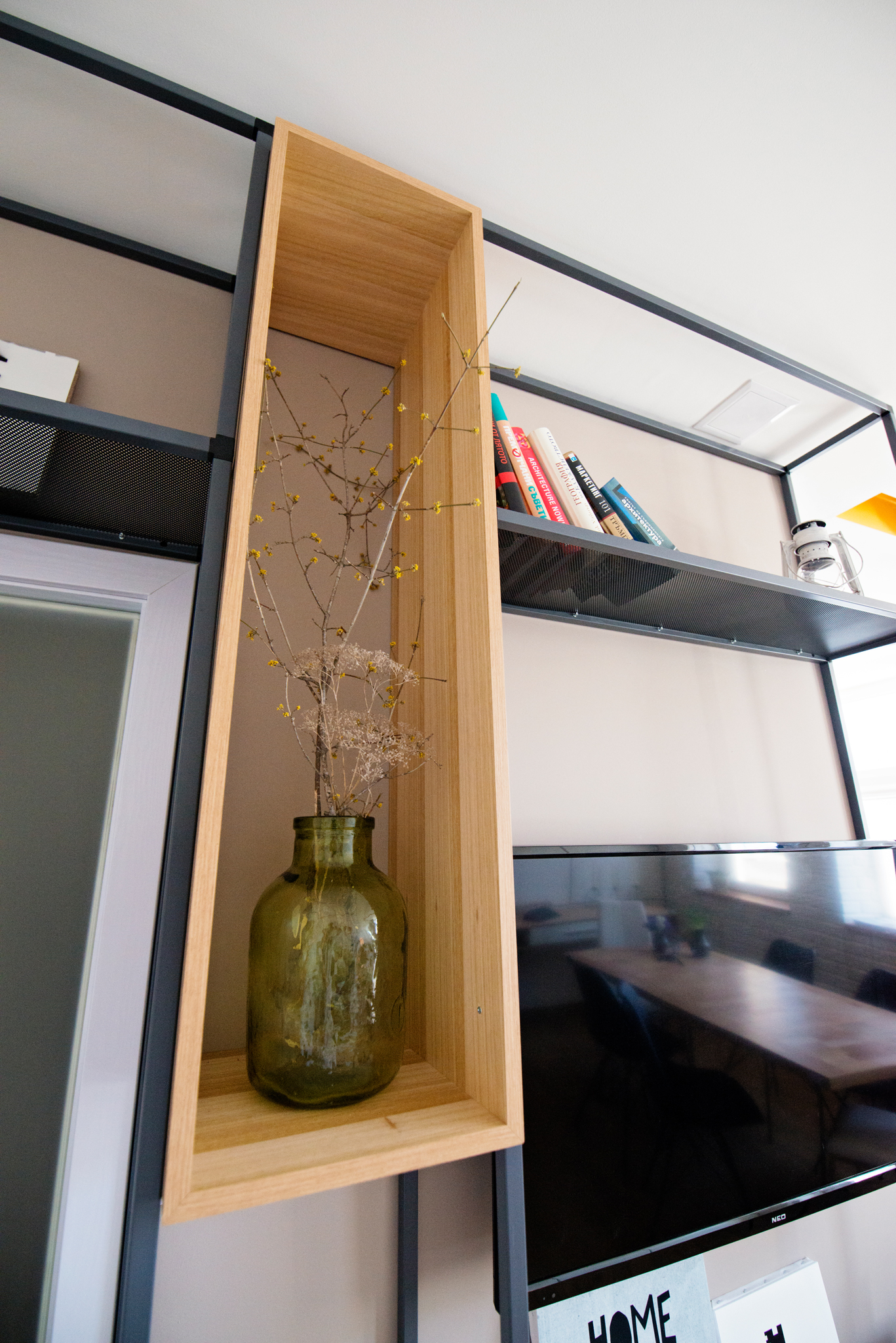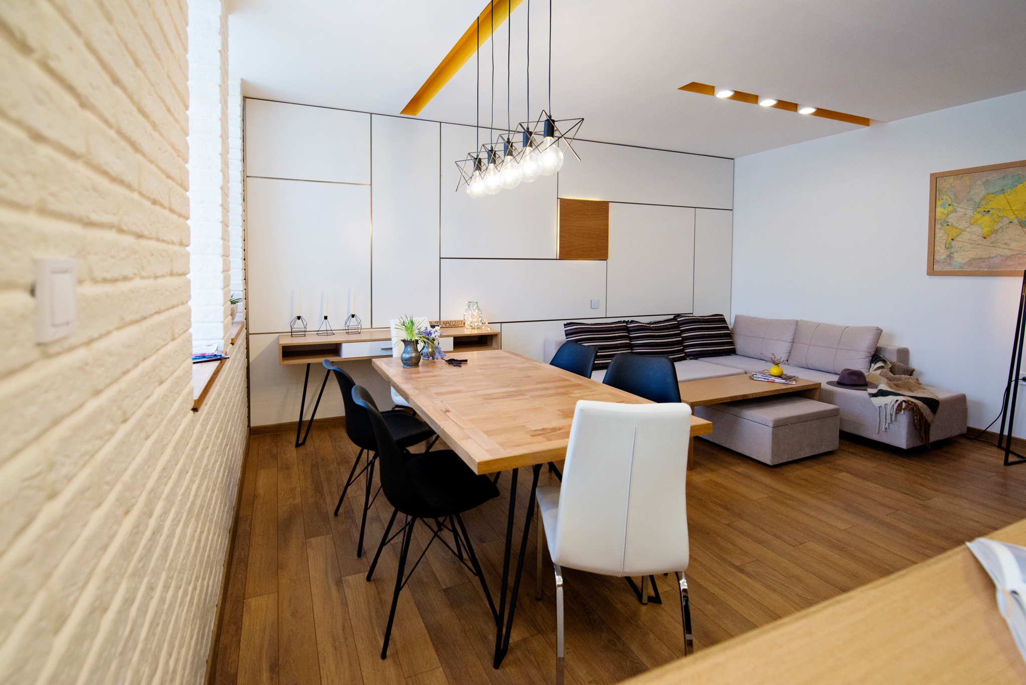 WOOD&WHITE представлява интериорно решение на двустайно жилище, собственост на млада двойка. Този артистичен апартамент се намира в стара тухлена сграда, разположена в красивата морска градина на Бургас, на няколко крачки от плажните алеи.