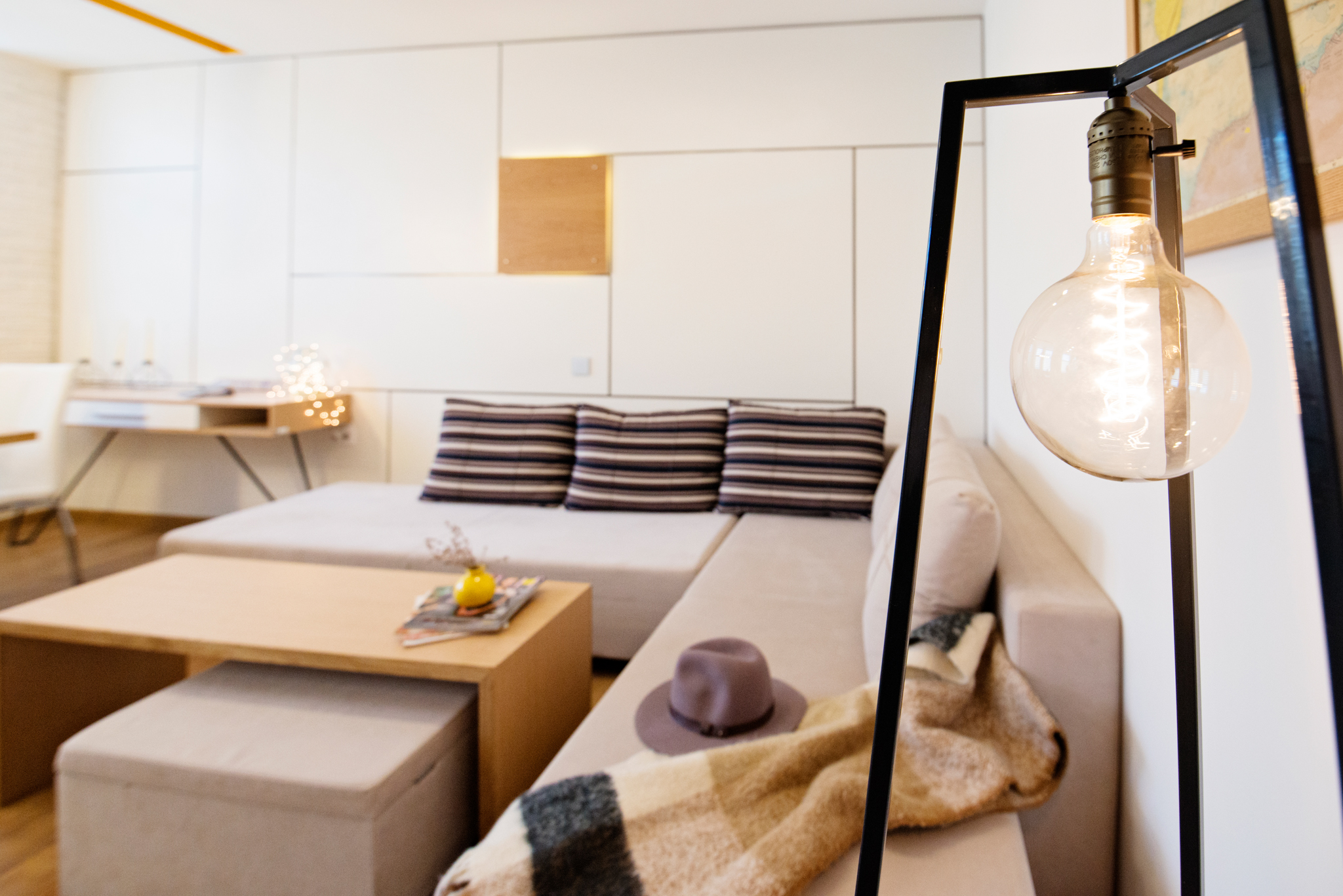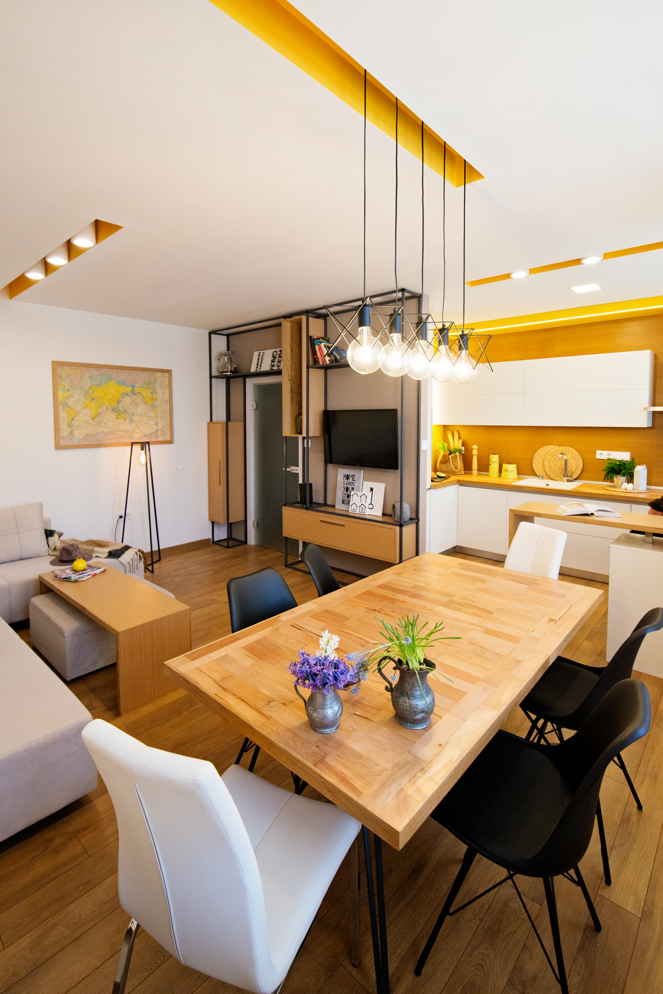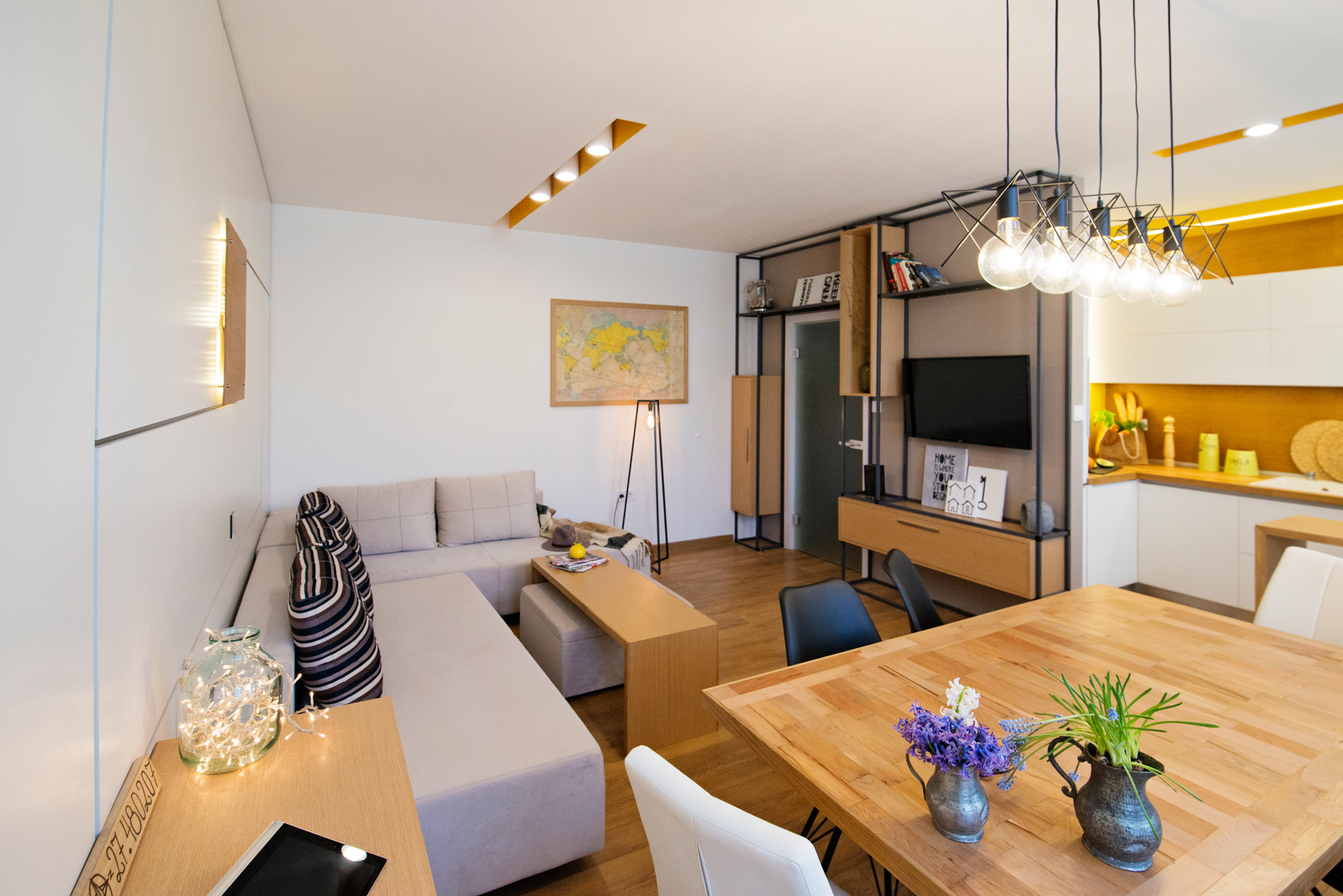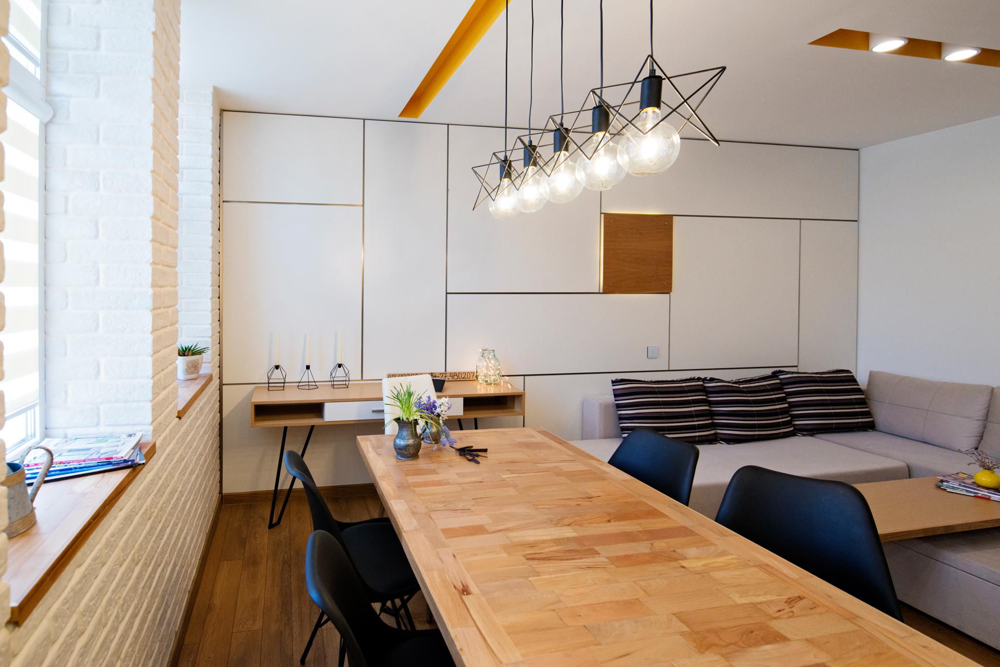 WOOD&WHITE представлява интериорно решение на двустайно жилище, собственост на млада двойка. Този артистичен апартамент се намира в стара тухлена сграда, разположена в красивата морска градина на Бургас, на няколко крачки от плажните алеи.