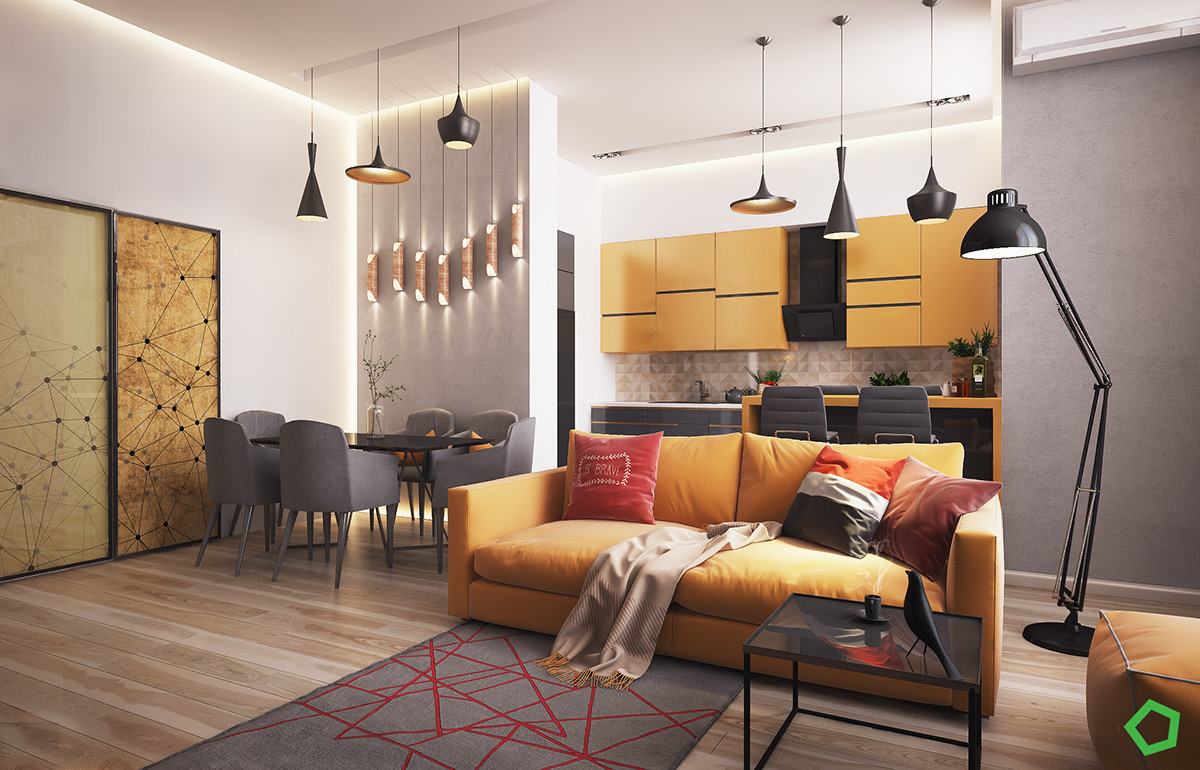 Отворените пространства предлагат доста удобен и ефективен начин домът ни да изглежда по- голям и просторен. Обединяващото между тези три теми е цветният интериорен акцент и по-точно – жълтото като акцент при отворените интериорни оформления. Защо акцентът при декора е върху жълтия цвят? Защото като че ли всеки негов нюанс носи определена индивидуалност и силна експресивност, което го прави идеален за широко отворени пространства.