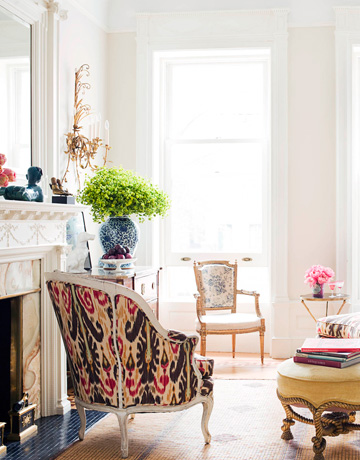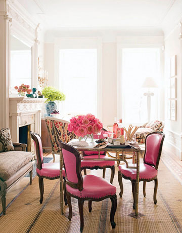 Тази малка къща, построена през 1890 г. се намира в Бруклин. Пред Джонатан Бергер, декоратор, който е работил по оформлението на къщата, е стояла трудна задача – да създаде интериор под девиз „много женствена и шик“. Собственичката на къщата Хедър Еванс, майка на четири дъщери, избрала за водещ цвят розовото. Този цвят прелива от стая в стая, активно доминира. Мебели, закупени на пазари от Франция, леко износени килими на пода, антични лампи и порцелан – всичко това създава картина на стар епропейски дом, съхраняващ историята на няколко поколения.