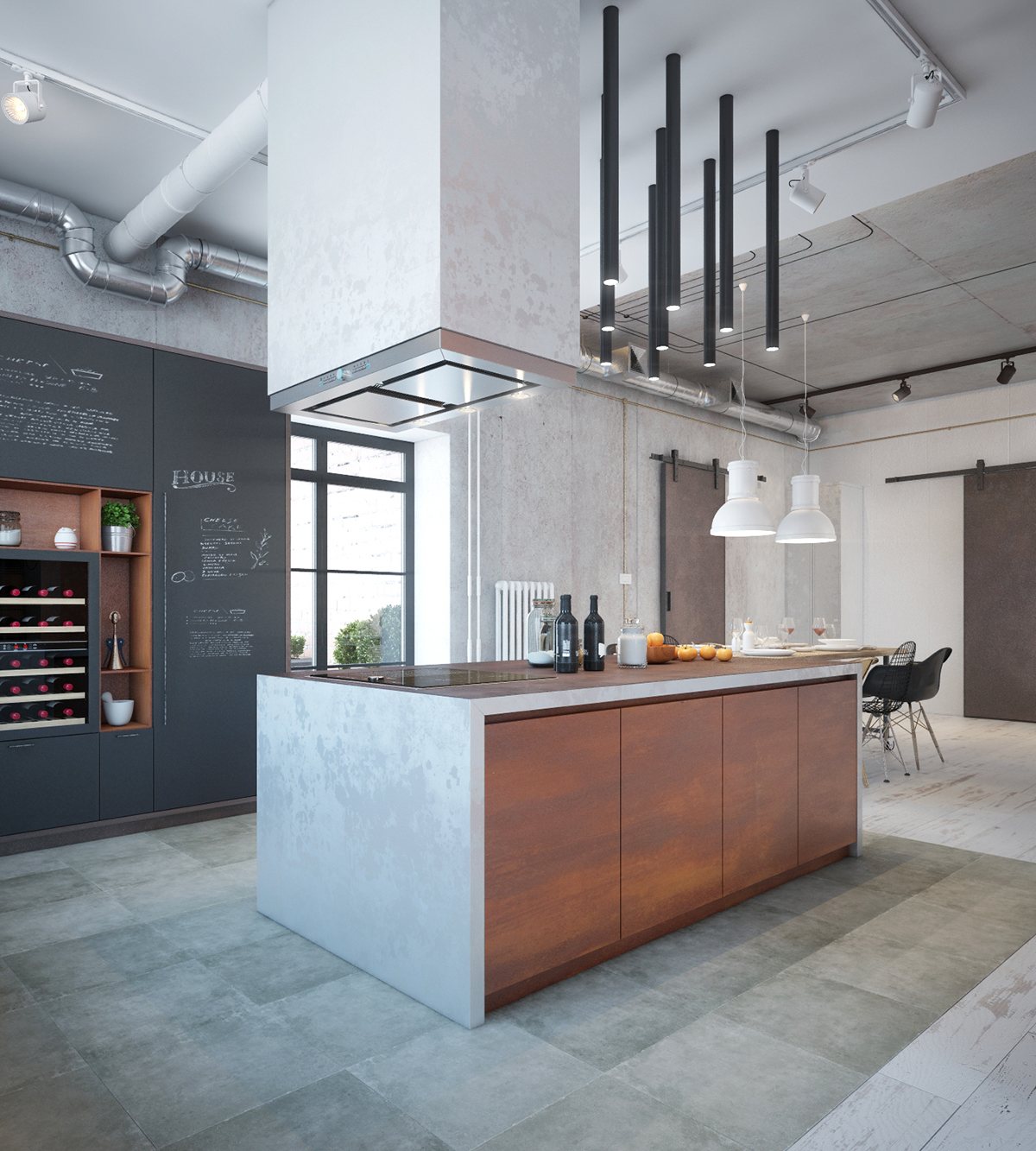 Проектиран от Dmitry Sheleg и ZROBYM Architects, този интериор от 280 кв.м. в Минск се опитва да разбие стереотипите, свързани с интериорите, повлияни от индустриалния, промишлен стил. Жилището обхваща и съдържа функциите, които правят стила толкова популярен и с толкова много фенове. То поддържа най-важните елементи на промишления декор – като широкото използване на недовършен бетон и изложени въздуховоди, но го прави по-удобен за импресии, благодарение на своята топла цветова тема и избор на удобни мебели. Ако търсите начин да съчетаете градската чувствителност и традиционни акценти, си заслужава да разгледате този интериор.